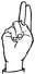 На ћирилици написано БУДИМИР ГОВЕДАРИЦА састоји се из 17 слова [?]. Исписано ћириличном једноручном азбуком за глувонеме: